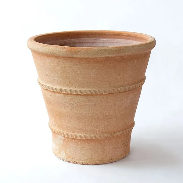 These extraordinary Cretab garden pots are thrown by hand, then fired for hours in wood-burning kilns that give them a soft and variable shade of tan, which changes with the light and the pots’ contents. Shapes are drawn from Classical-era containers that were then, and are now, common household items in Crete. They provide a look that is both traditional and informal, and we’ve given them prominent positions throughout our gardens and in our home.