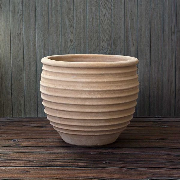 Suzan and our other extraordinary Cretan pots are thrown by hand, then fired for hours in wood-burning kilns that give them a soft and variable shade of tan, which changes with the light and the pots’ contents. Shapes are drawn from Classical-era containers that were then, and are now, common household items in Crete. They provide a look that is both traditional and informal, and we’ve given them prominent positions throughout our gardens and in our home.