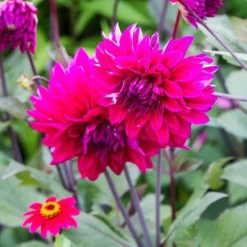Dahlias are native to Mexico and South America, and hold their display in reserve for mid- to late summer and early fall. The genus offers incredible diversity of color and form and we offer dozens of varieties every year. Dahlias are perennial but not cold hardy – tubers can overwinter in the ground in Zone 8 or warmer; in colder climates tubers can be dug after frost and easily stored indoors over winter. Please note – Dahlias should be planted outside once the danger of frost has passed and soil temperature has reached approximately 60°. We ship tubers beginning in late March and they can be stored until planting time if necessary. For more information on growing Dahlias, click on the Growing Guide tab on this page.