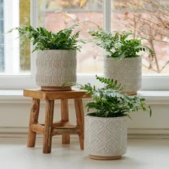 Modular and contemporary in style, this four-sided planter has an architectural presence that will enhance a variety of plantings. Use it as a home for a collection of annuals, or for a minimalist look, plant it with a single specimen such as spiky Cordyline ‘Red Star’ or the statuesque Ornamental Grass Calamagrostis ‘Karl Foerster.’ The pot has the look of heavy cement, but it’s crafted from lightweight lavastone, a durable, weather-resistant compound created from volcanic ash. The result is a container that’s both attractive and easily portable. The neutral color flatters a wide range of plantings.