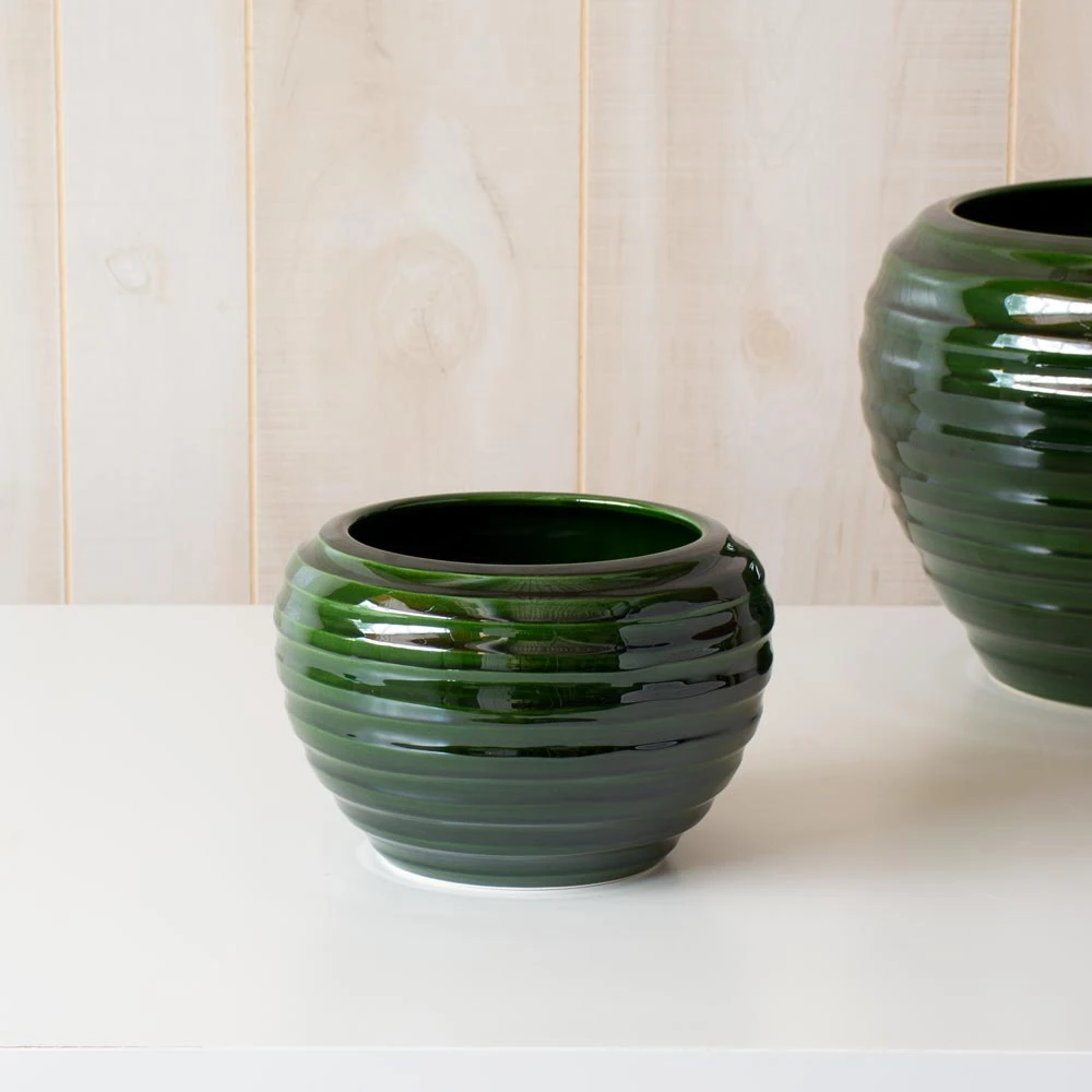Hand-thrown by skilled artisans in Tuscany using premium clay and glazed a rich, glossy hunter green, the stunning Spring Lake cachepot conjures summer days beside the mirror-still waters of an Italian lake. The cachepot’s ribbed texture adds subtle interest, like a quiet ripple across the water, without distracting from the foliage it frames. A superb gift.